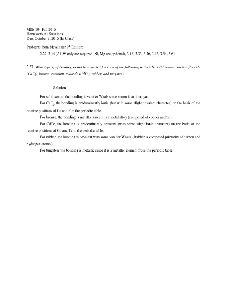 Ionic bonding metallic bonding covalent bonding with some van der waals bond van der waals bonding.